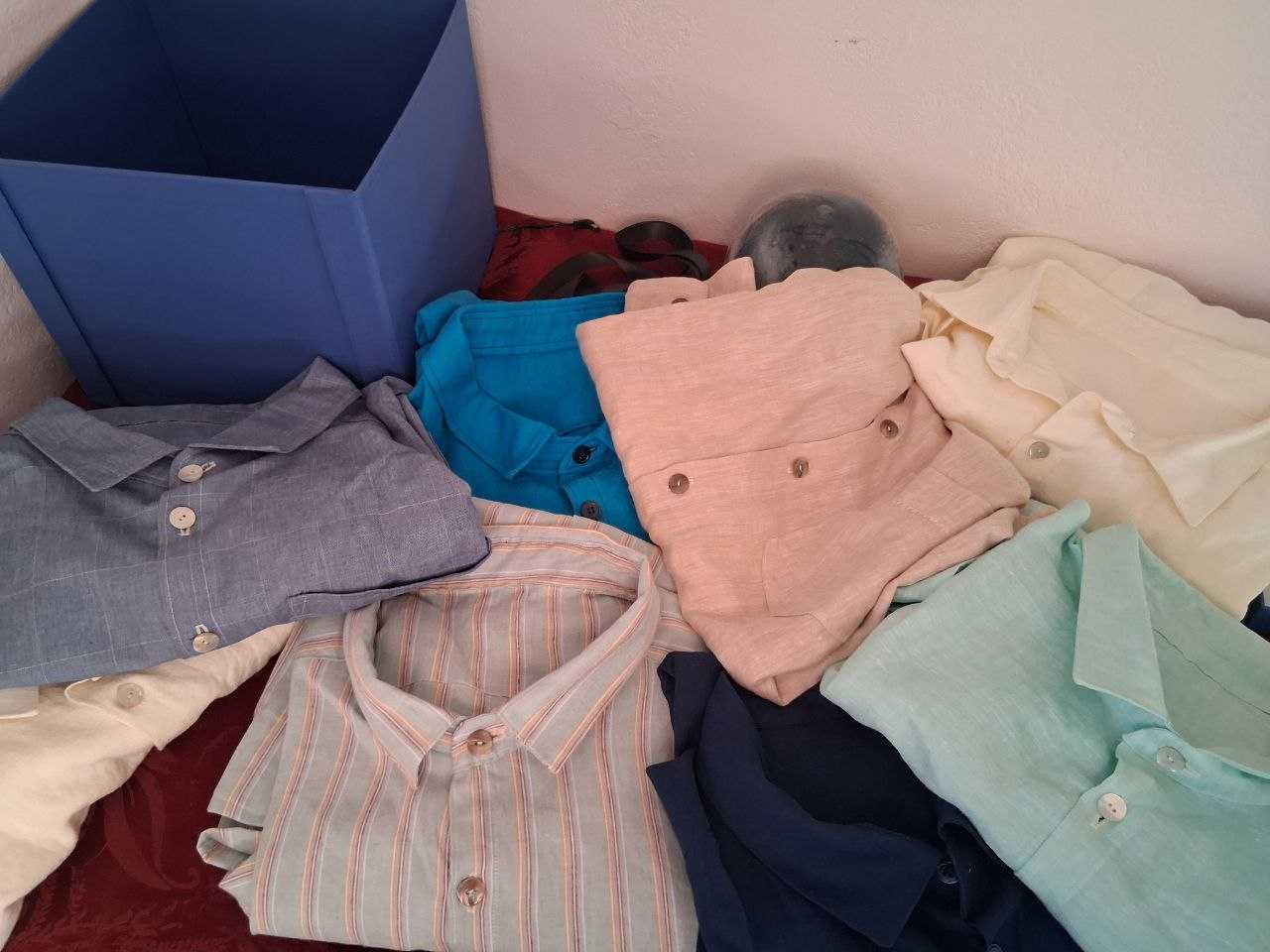 Two days after my son turned in his last paper for his bachelor's degree, I finished my shirt sewing project. Eight shirts, made to measure. Most of the fabrics are linen. Yes, regrettably you can tell exactly when I got my sewing machine repaired... but I hope these help him as he moves through his master's program and in life.