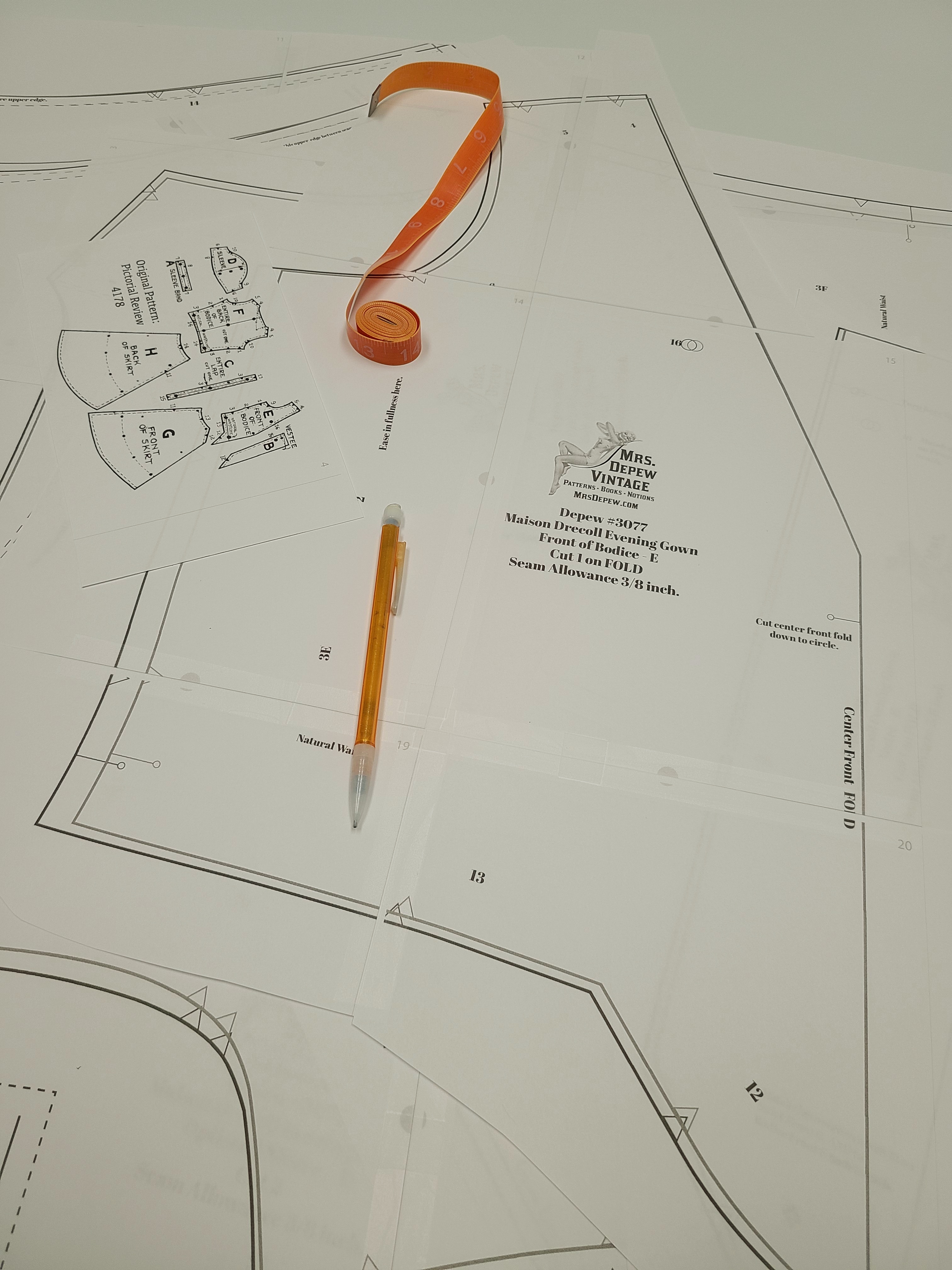 Her inspiration is from a dress in Singin' in the Rain, and I found a good starting point pattern to use from Mrs. Depew Patterns that has a similar vibe. It's a repo of a 1920s evening gown.