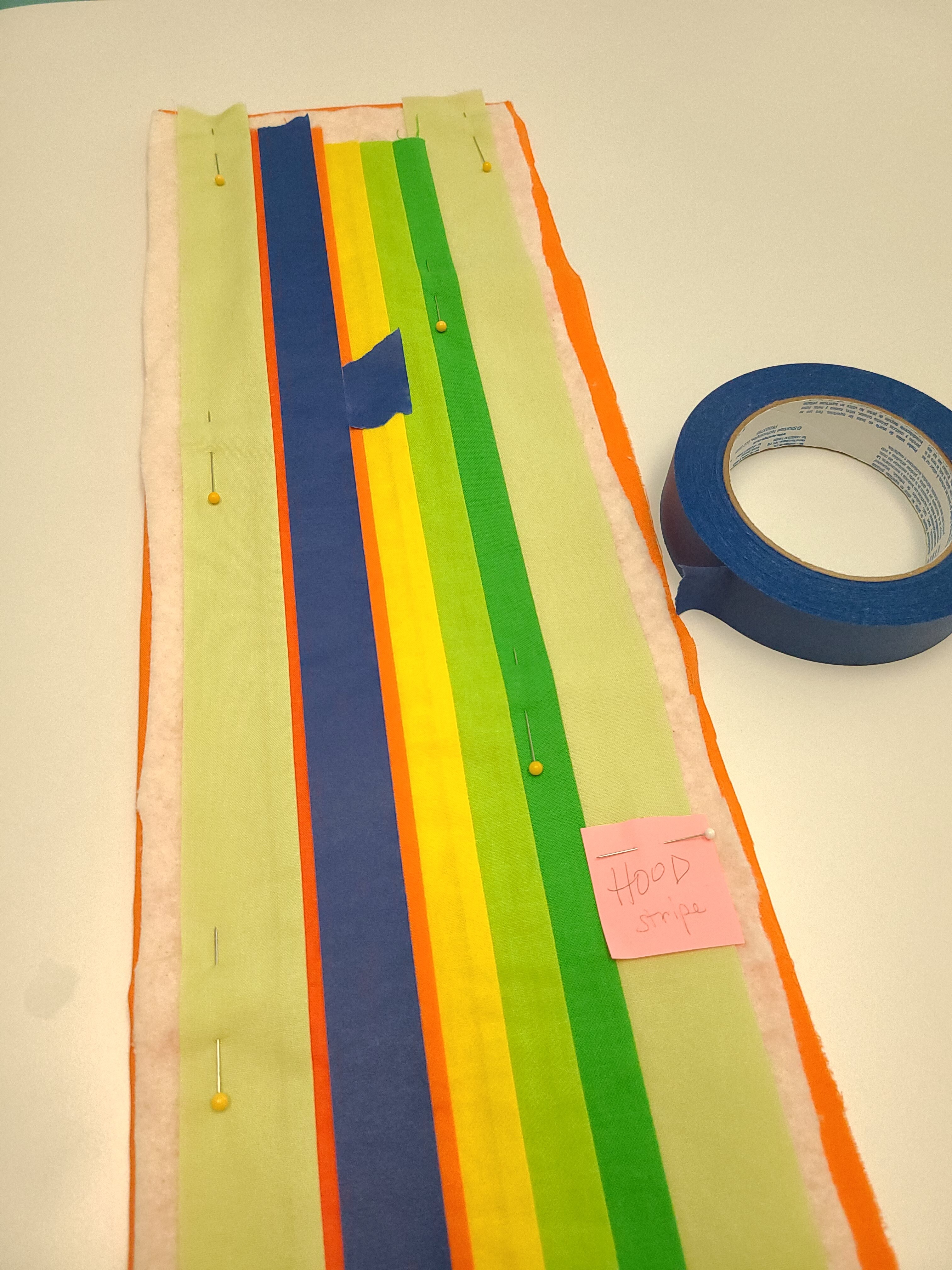 I thought it looked cool with the tape on the front pieces for the horizontal quilt lines (pictured).