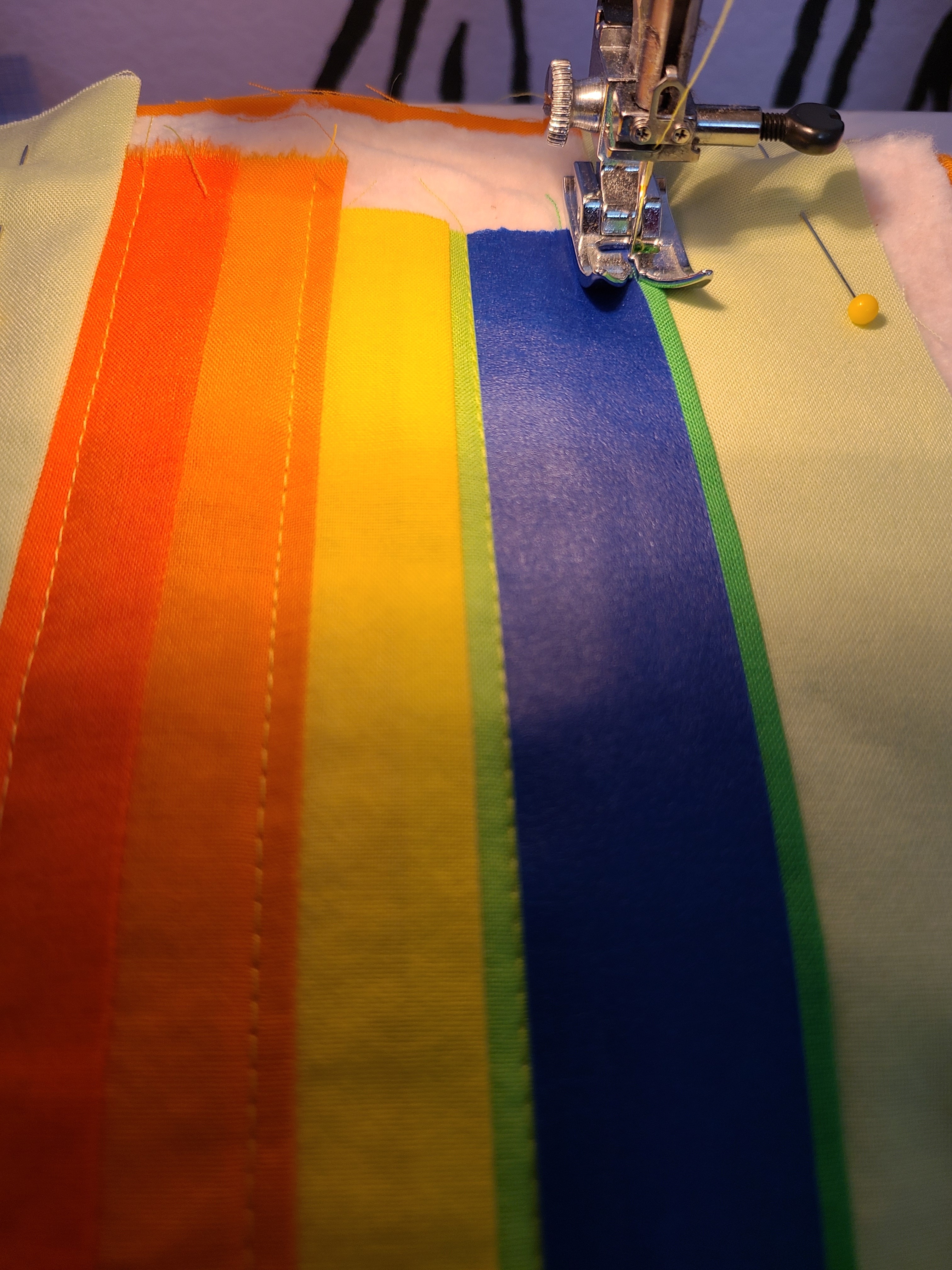I matched both the stripes and the grid of quilting across the front pieces, because why not? I plan to make invisible patch pockets too.