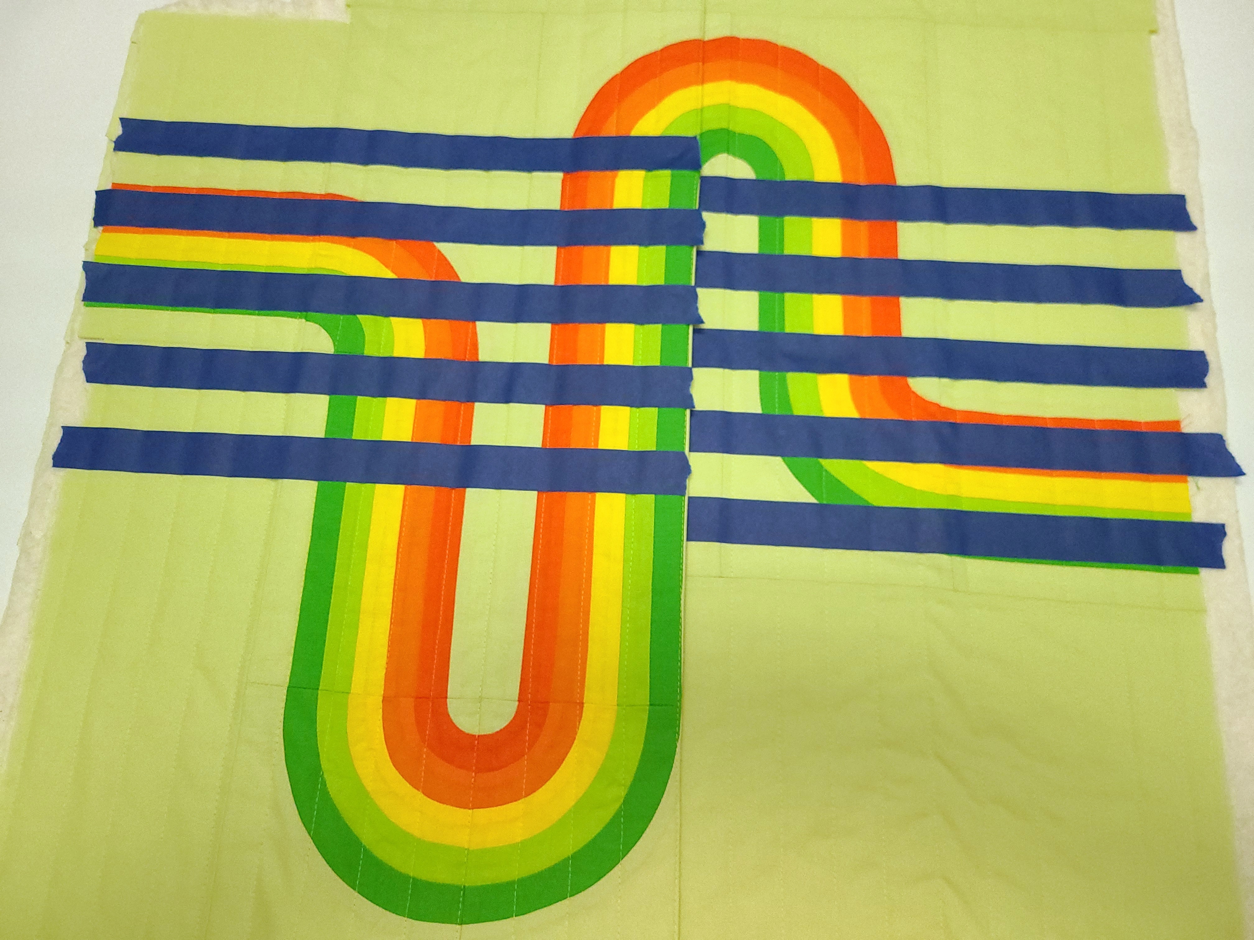 Cursing past me for deciding on such a tiny grid of stitching, but I'm liking how it looks lol! Making it as easy as possible by using painter's tape and stitching on each side.